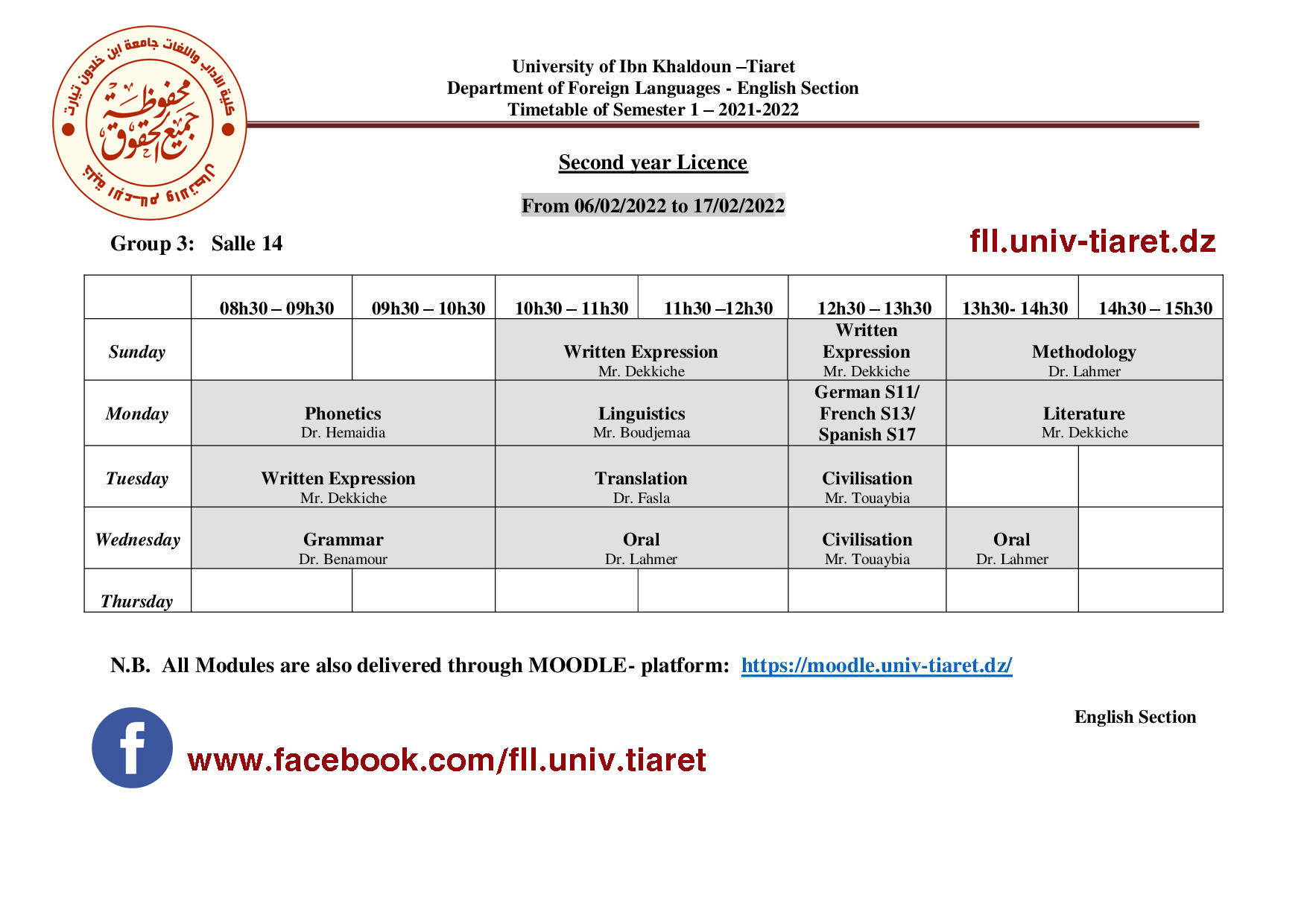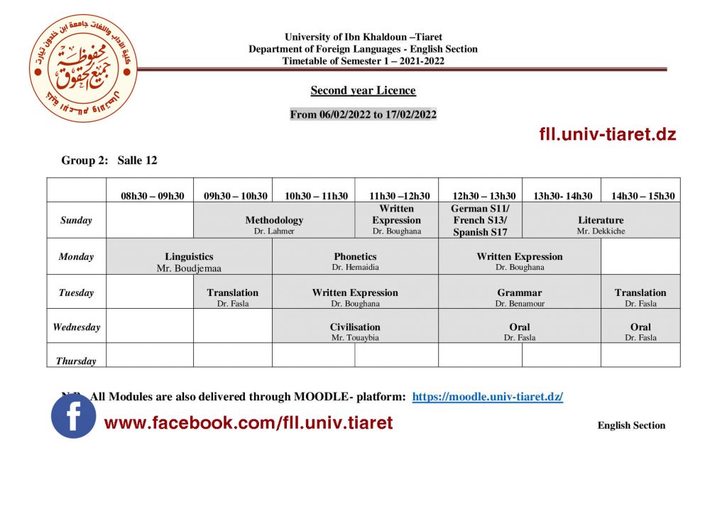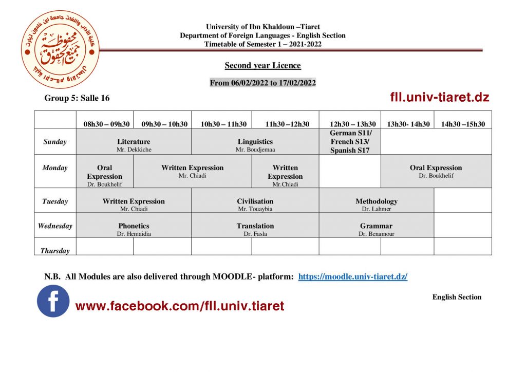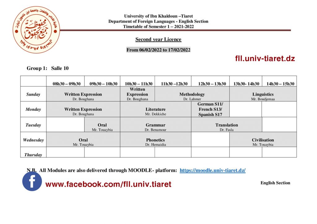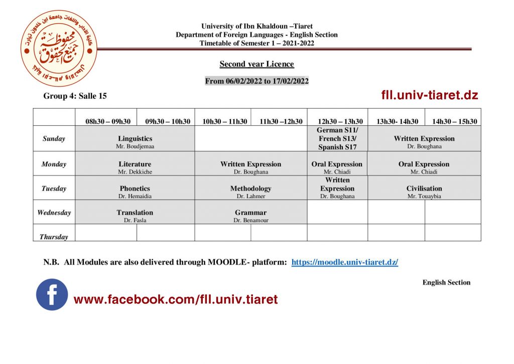 جدول إستعمال الزمن لطلبة السنة الثانية ليسانس فرع اللغة الإنجليزية 2022/2021 تصفّح المقالات جدول استعمال الزمن الخاص بالسداسي6 (س3 ليسانس) تخصص نقد ومناهج 2022/2021 جدول إستعمال الزمن لطلبة السنة 03 ليسانس فرع اللغة الإنجليزية 2022/2021