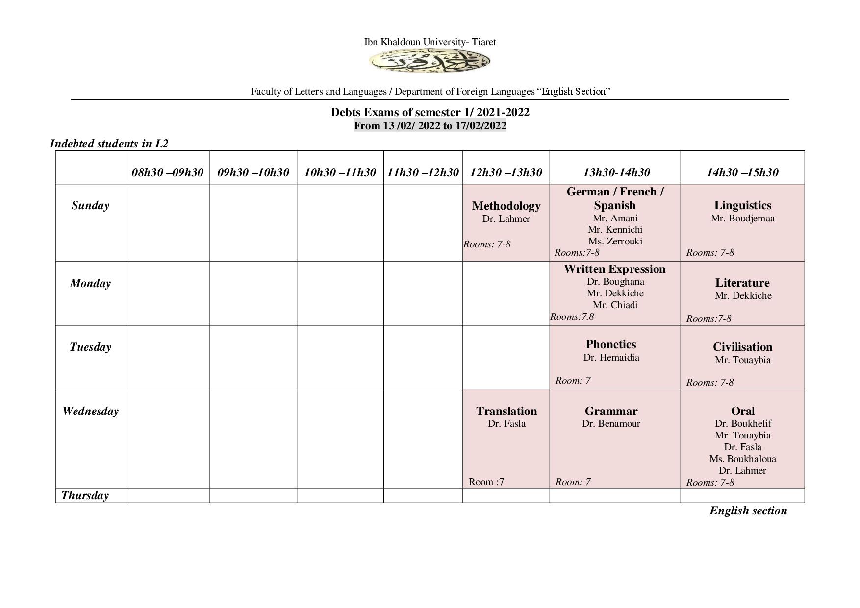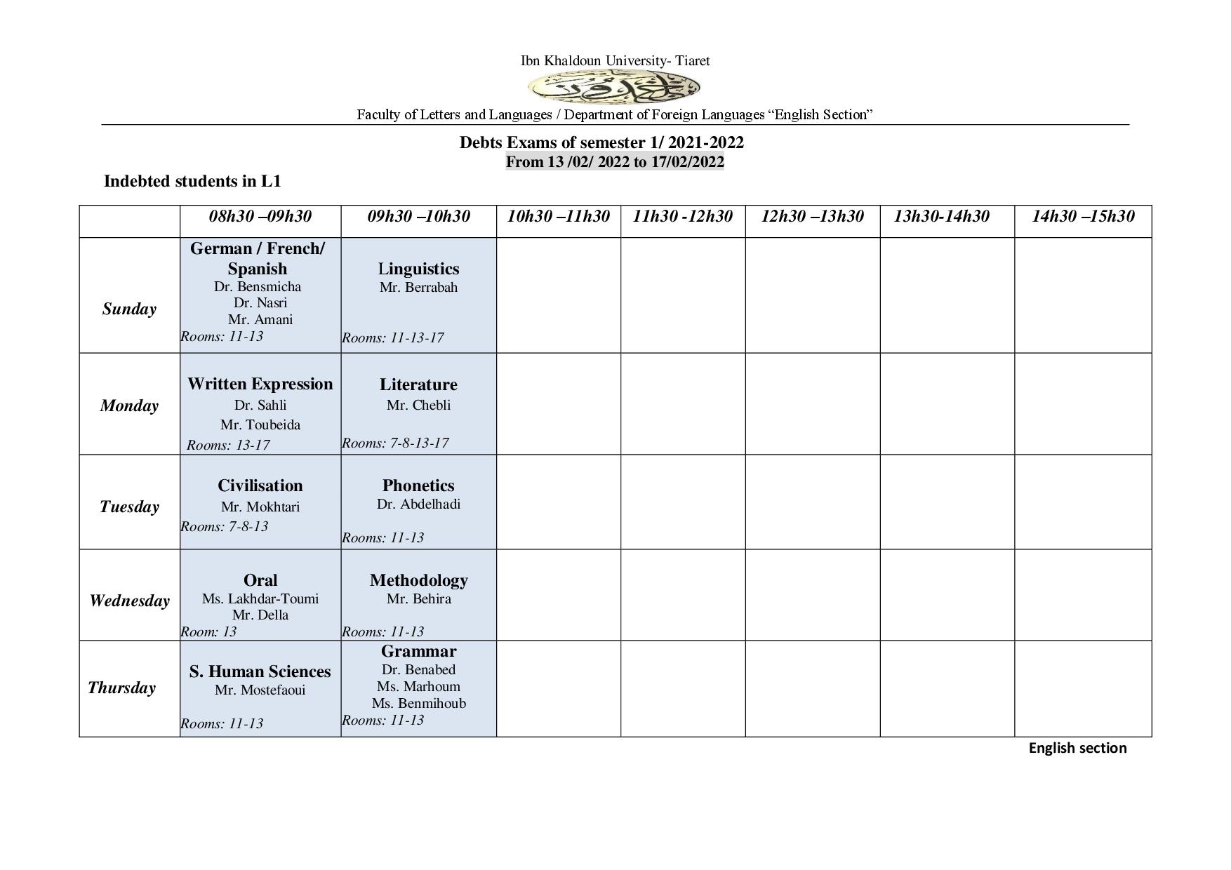 جدول امتحانات الديون السنة أولى ليسانس فرع اللغة الإنجليزية 2022/2021 جدول امتحانات الديون السنة الثانية ليسانس فرع اللغة الإنجليزية 2022/2021 تصفّح المقالات رزنامة امتحانات الديون الخاصة بالسنة 2 ليسانس جميع التخصصات قسم اللغة والأدب العربي دعوة للمشاركة في اليوم الدراسي الموسوم بأدب السجون في العهد الاستعماري وتأثيراته