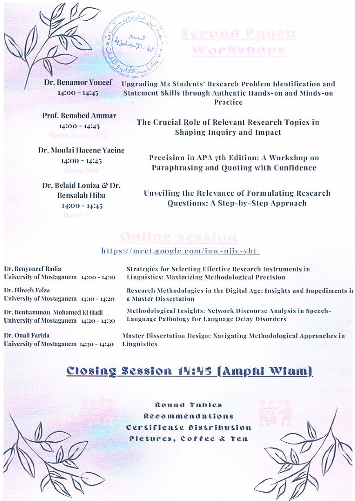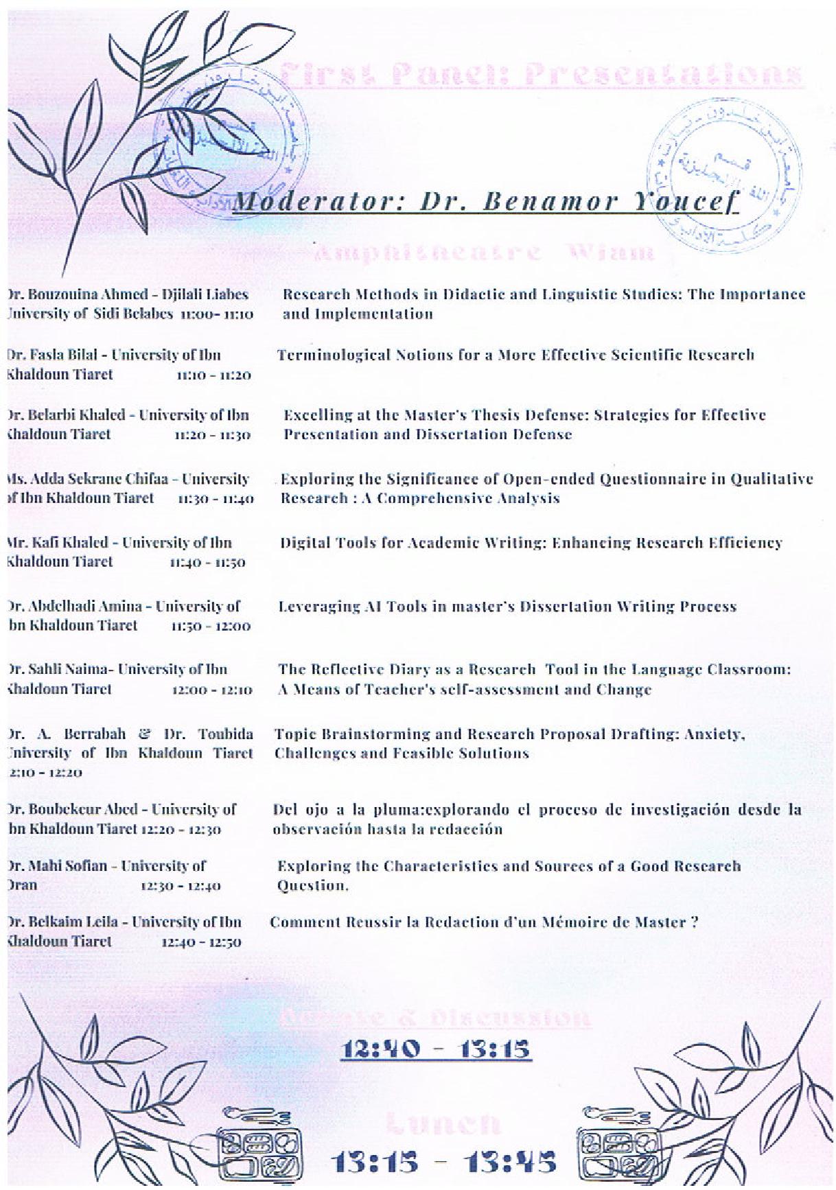 Dr. Moulai Hacene Yacine Pr. Benabed Ammar Dr. Benamor Youcef Dr. Belarbi Khaled Dr. Abdelhadi Amina Dr. Sahli Naima Dr. Benyoucef Radia Dr. Hirech Faiza.