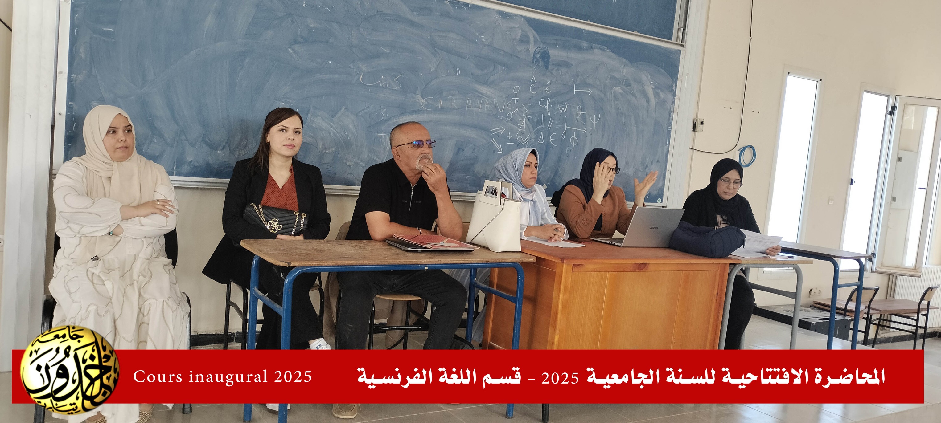 تمّ اليوم بقِسم اللغة الفرنسية بكلية الآداب واللغات تنظيم المحاضرة الافتتاحية المخصّصة لطلبة السنة الأولى ليسانس، في أجواء مفعمة بالحماس والاكتشاف.