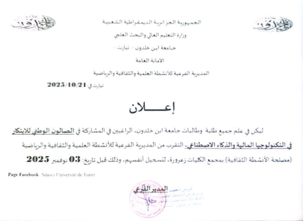 الصالون الوطني للإبتكار في التكنولوجيا المالية والذكاء الاصطناعي تصفّح المقالات المسابقة الوطنية الجامعية للفيلم الوثائقي المسابقة الوطنية الجامعية لصناعة المحتوى الإيجابي – محتوى بيئي سياحي