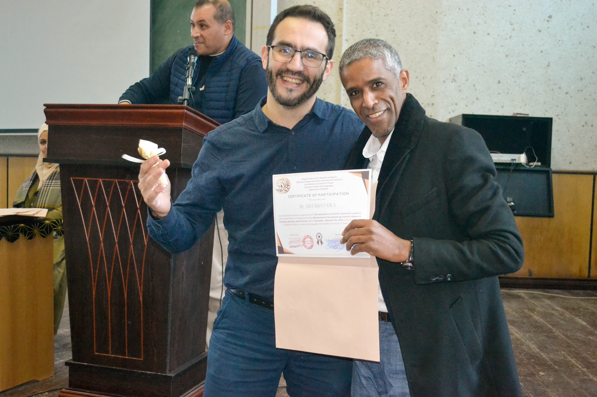 The Department of English within the Faculty of Letters and Languages at Ibn Khaldoun University of Tiaret successfully concluded a significant Two-Day Hybrid National Conference on December 16-17, 2025. Entitled “Mechanisms for Accomplishing Scientific Research: Principles, Methods, and Practices,” the event was conducted across the faculty’s five core languages: English, Arabic, French, Spanish, and German