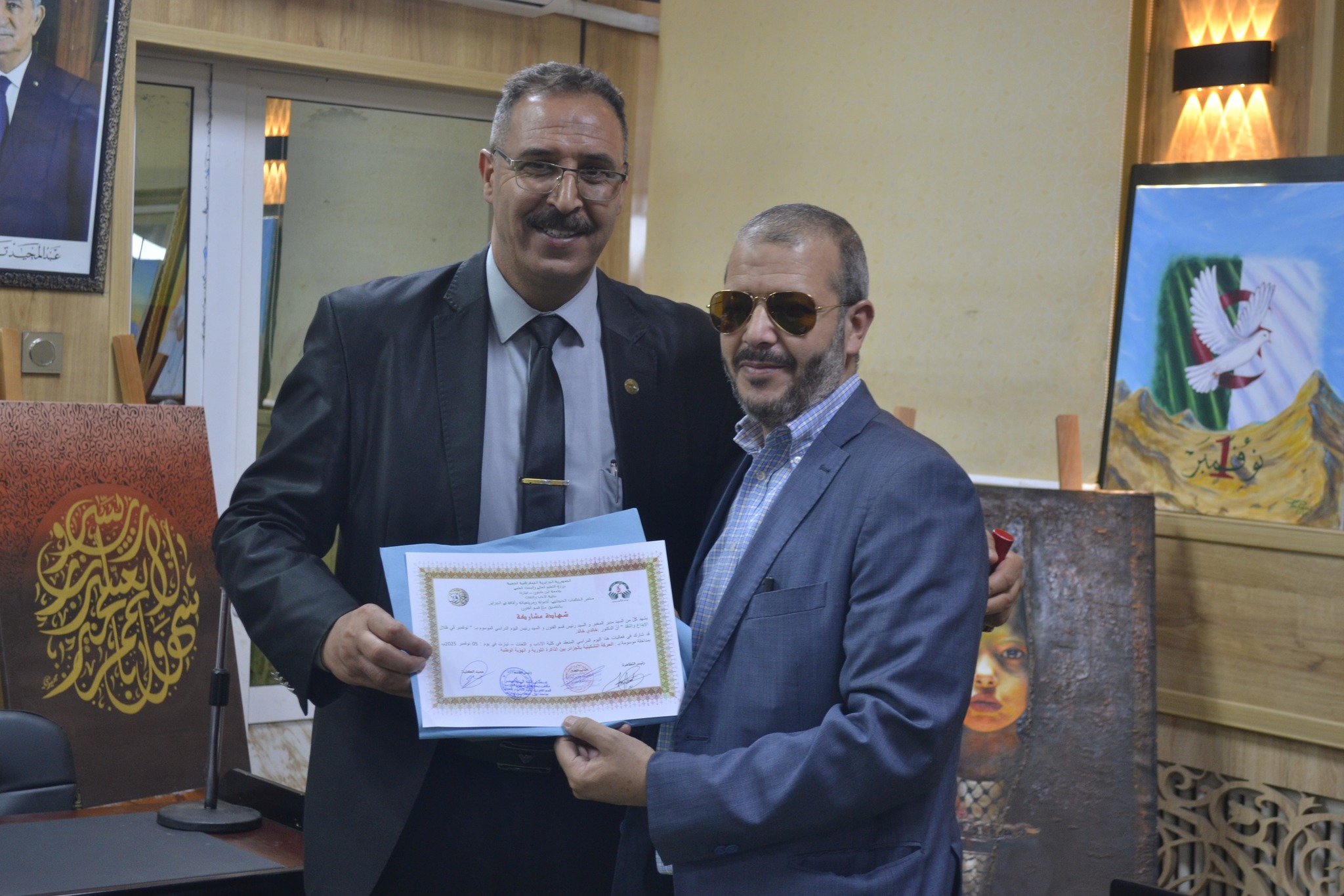 وفي ختام التظاهرة، تمّ توزيع الجوائز على الطلبة الأوائل المشاركين في المعرض التشكيلي، وتوزيع الشهادات والتكريمات على الأساتذة والمساهمين في إنجاح هذا الحدث الثقافي، مع قراءة التوصيات الختامية التي أكدت على أهمية ترسيخ الثقافة الوطنية والإبداع الفني في الوسط الجامعي.